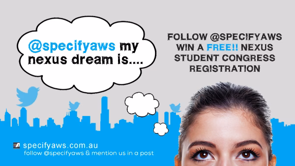 Architectural Window Systems has recently launched a competition for a lucky Architecture student to win a complimentary registration to the 2013 Nexus Student Architecture Congress. Simply follow @SpecifyAWS on Twitter and mention us in a tweet!
