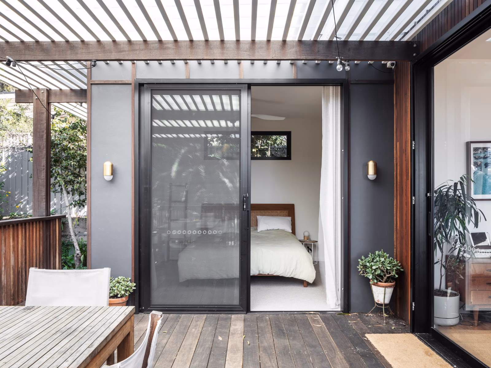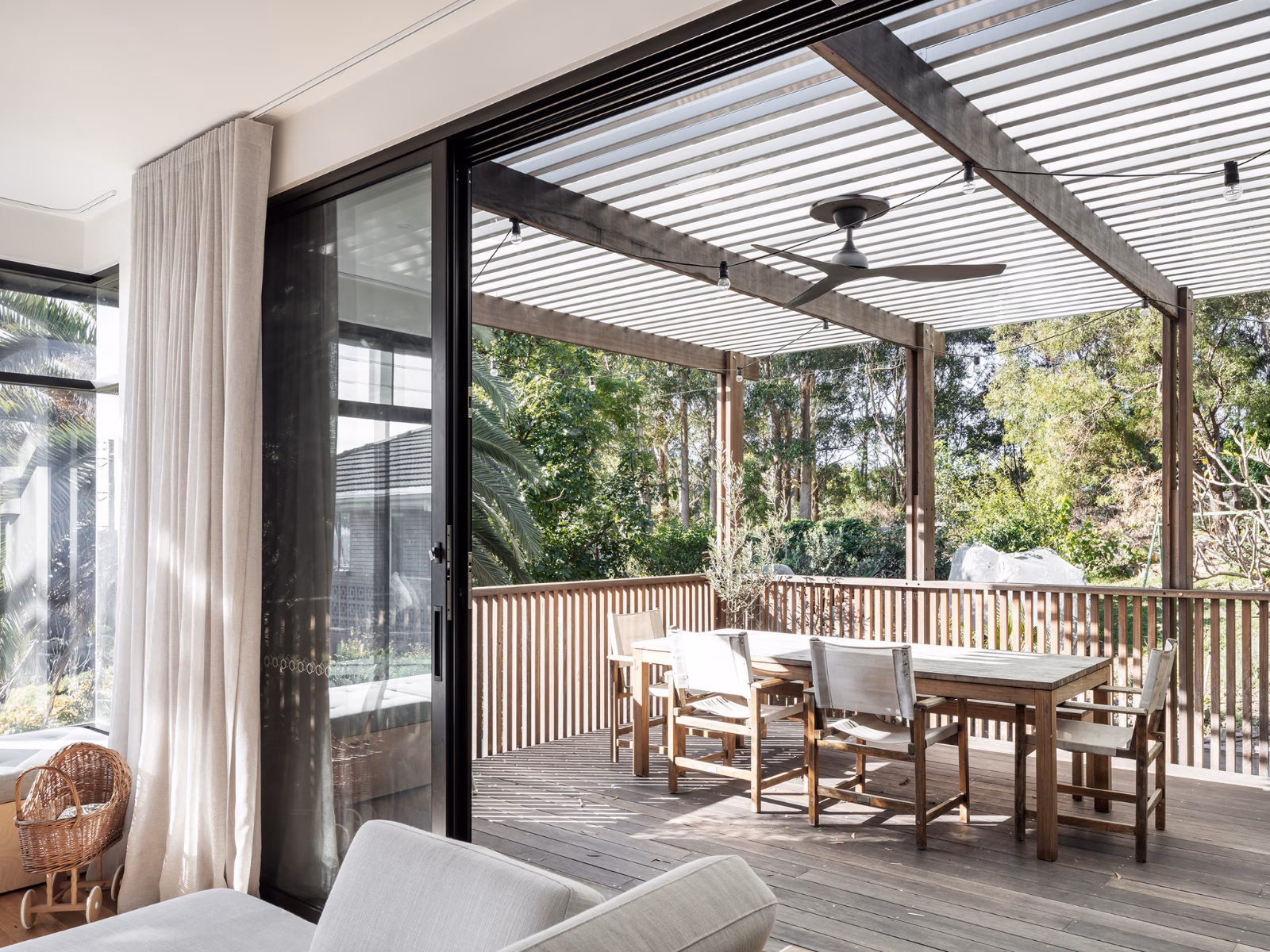A new master bedroom wing sits behind the added living space and is directly accessible from the terrace through the Series 618 MAGNUM™ Sliding Doors, which provide floor-to-ceiling views of the beachfront and bushland.