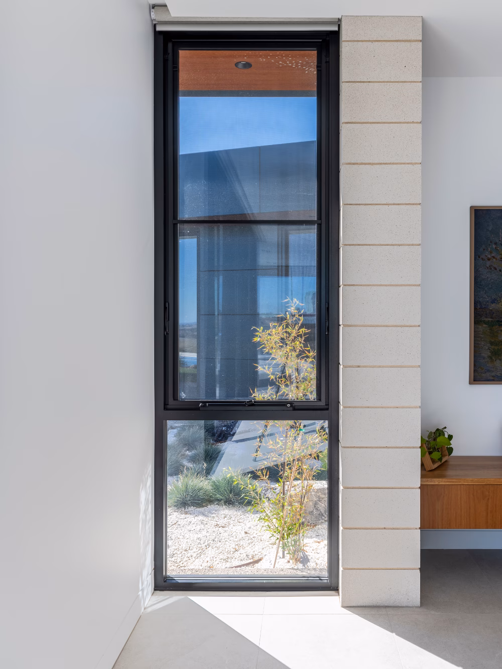 The project presented significant technical challenges, particularly in the design and installation of the home’s expansive double glazed windows and oversize doors (measuring 3m in height), which were used to optimise views while minimising visual obstructions.
