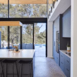 A significant design element of this project is the seamless connection between the kitchen and the outdoors. The Series 411 ViewMASTER™ Bi-fold Door spans wall-to-wall, enabling occupants to admire the surrounding landscape from inside.