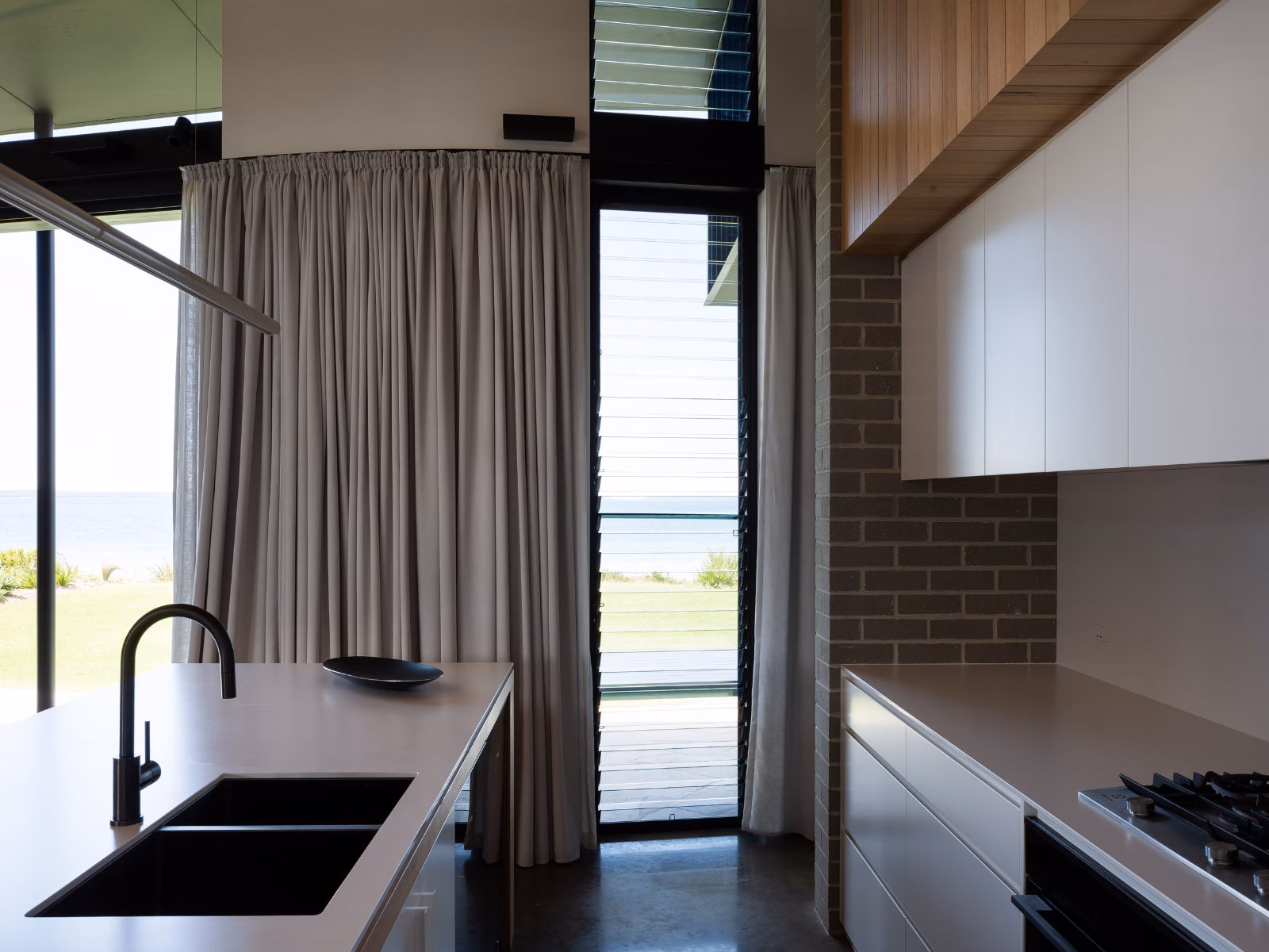 Given the site’s exposed location, the builder and architect carefully selected materials capable of withstanding the harsh conditions along the coast. Hanlon’s Windows were engaged to supply AWS high-performance windows and doors systems.